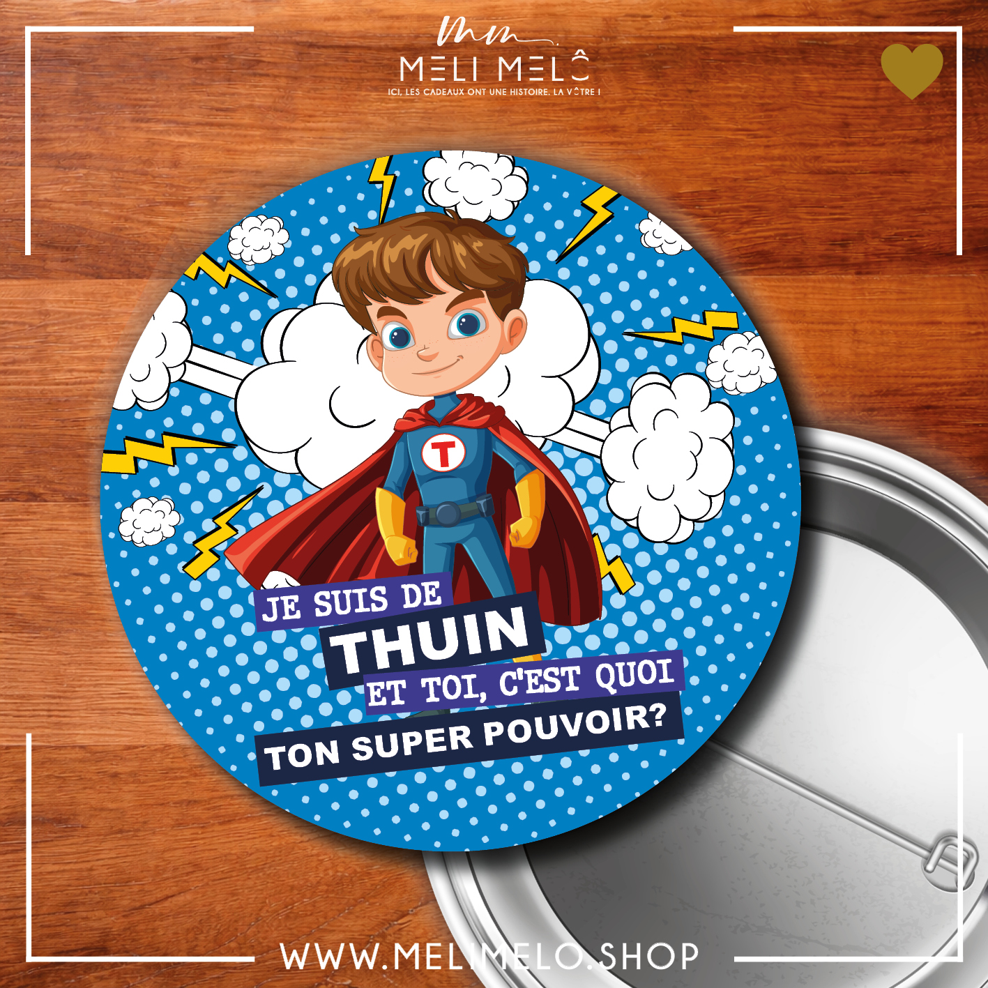 Badge à épingle – Je suis de Thuin. Et toi? C’est quoi ton super-pouvoir?
